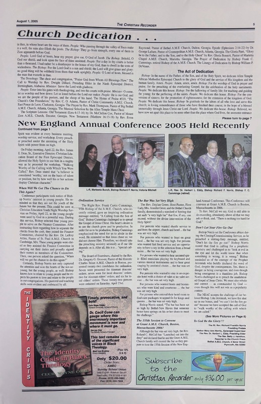 “August 1, 2005,” AME-Digital Archives, accessed January 28, 2026, https://www.ame-archives.org/digitalexhibits/items/show/670.